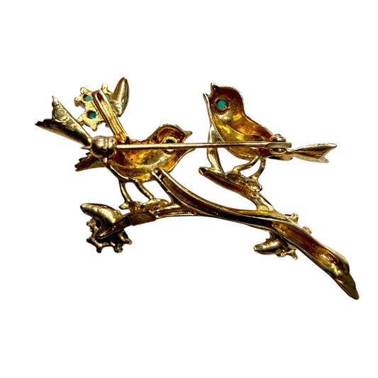 14k Yellow Gold "Birds on branch" Brooch 7.65g.