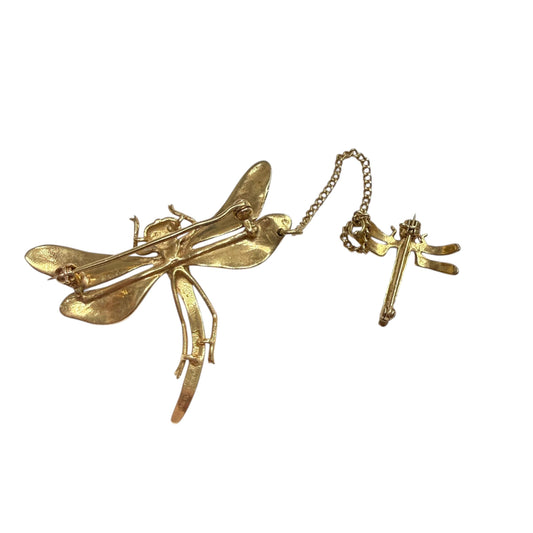 Vintage 14k Yellow Gold Doubele Dragonfly Brooch 8.6g.