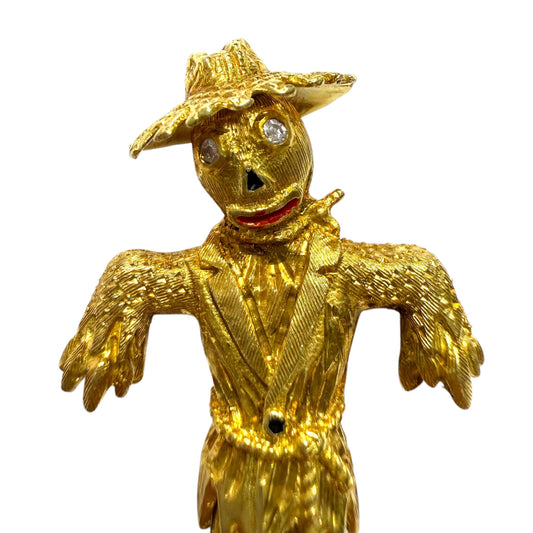 Vintage 18k Yellow Gold Scarecrow Brooch 13.33g.