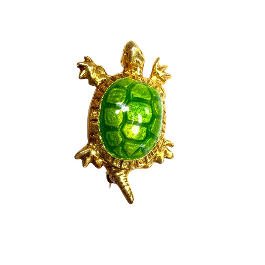 Vintage 18k Yellow Gold Enamel Turtle Brooch 5.2g.