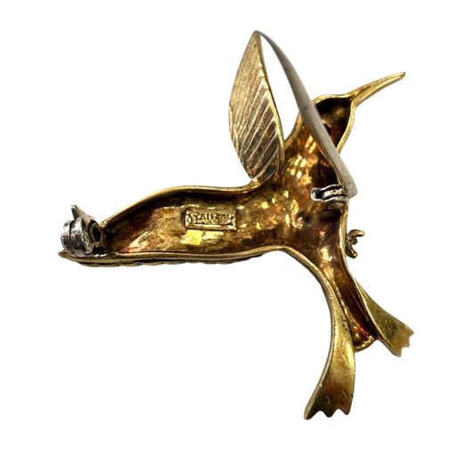 Vintage Enamel Bird Brooch in 14k Yellow Gold 18.1g.