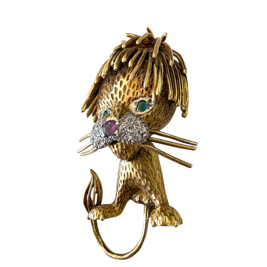 Vintage 18k Yellow Gold Lion Brooch 17.3g