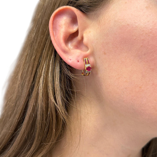 1.95cttw. Ruby & White Diamond Earrings in 14k Yellow Gold 3.76g.