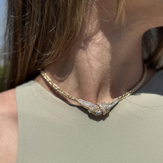 1.75cttw. White Diamond 2 Row Ribbon Necklace in 18k Two Toned Gold 35.07g.