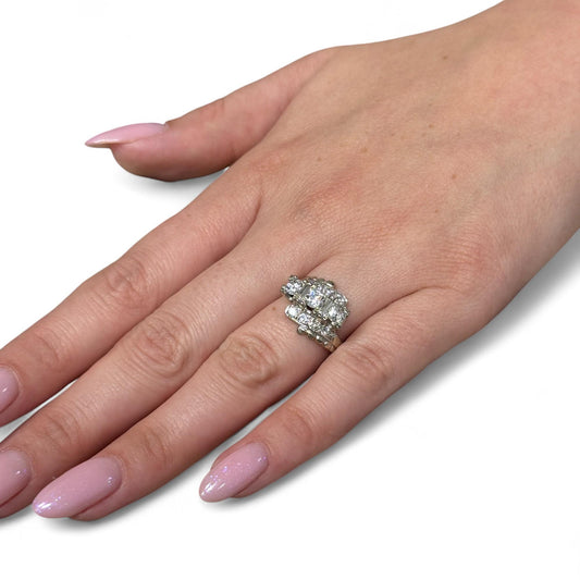 1.96cttw. White Diamond Vintage Cluster Ring in 14k White Gold 5US 6.65g.
