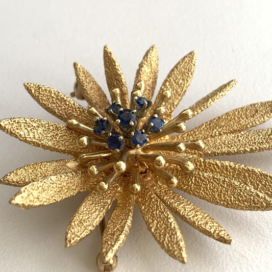 14k Flower Brooch in Yellow Gold With Sapphires 10.46g