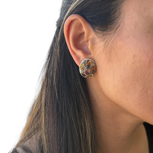 12cttw Multi-colour Citrine & 0.42cttw White Diamond Earrings in 14k Yellow Gold