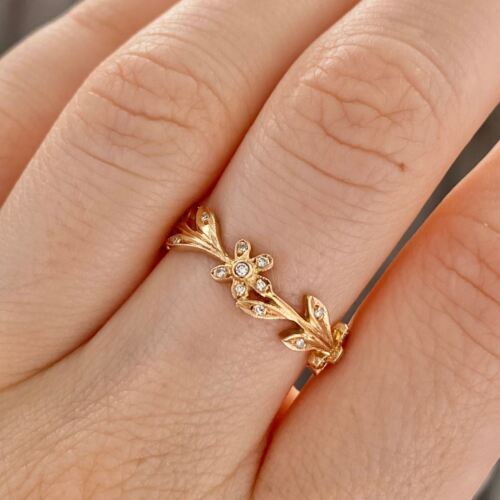 14 Rose Gold Diamond Flower Leaves Eternity Ring
