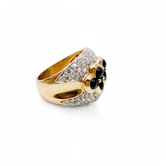 2.00 cttw. White Diamond Ring & Blue Sapphires Dome Ring in 14k Yellow Gold 7US