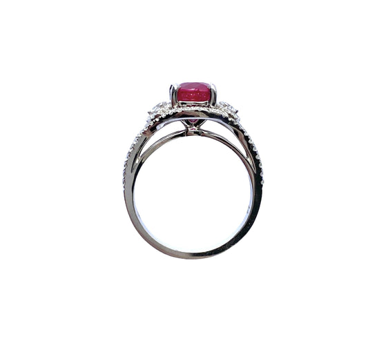 2.0ctw Ruby & Diamond Ring 18K White Gold 5.12G 6.5US