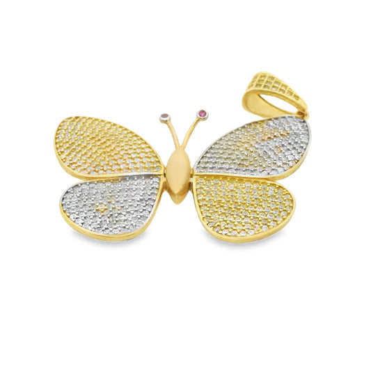 2.10 cttw. White Diamond Two Toned Butterfly Pendant in 14k Gold 6.80g