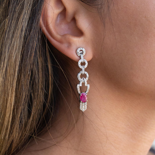 2.14cttw Pink Ruby & 0.55 cttw White Diamond Vintage Drop Earring in 14k Gold