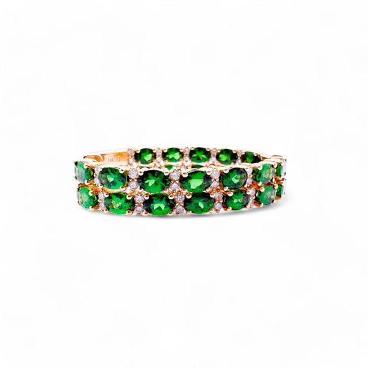 3.12 cttw. Tsavorite & White Diamonds Hoop Earrings in 14k Yellow Gold 8.9g