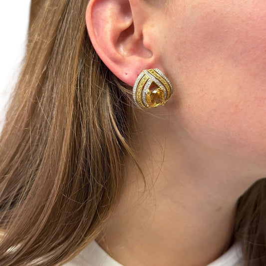 25cttw. Citrine & White Diamonds Earrings in 14k Yellow Gold 16.52g.