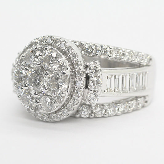 3 Carat Round and Baguette Diamond Cluster Ring in 18k White Gold 7us