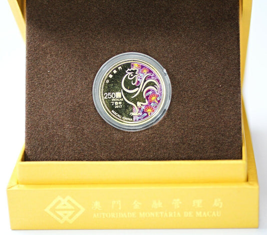 2017 Macau Rooster 1/4 Oz 999.9 Fine Gold Proof Colour Coin
