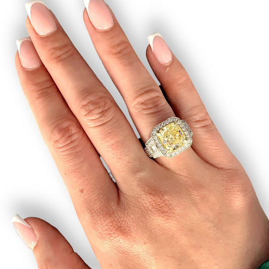 5.03 ct Fancy Light Yellow Diamond & 2.41 White Diamonds Platinum Ring