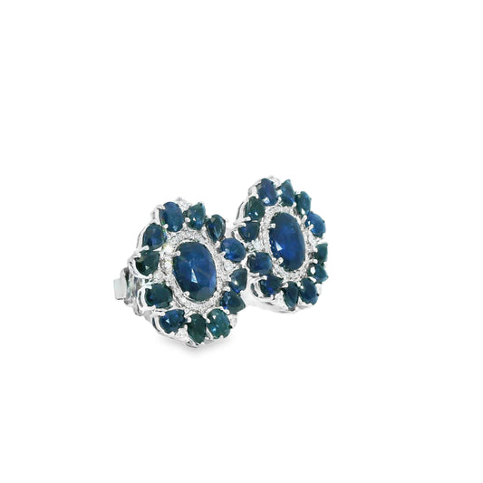 8.95 cttw. Blue Sapphire & White Diamond Earrings in 14k White Gold 10.62g.