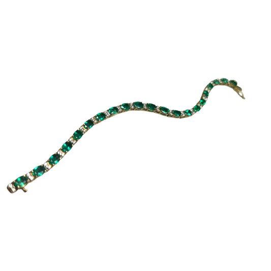 9.12cttw Green Emerald & 0.85cttw. White Diamond Bracelet in 14k Yellow Gold 7"