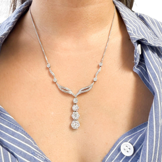 Antique 1.90 cttw. White Diamond Flower Drop Necklace in 14k White Gold