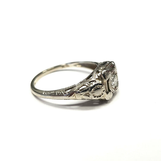 Antique 18k White Gold Diamond Ring 6us