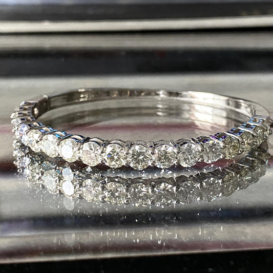 9.30 Cttw Diamond Bangle Halfway Tennis Bracelet 14K White Gold 17.6G