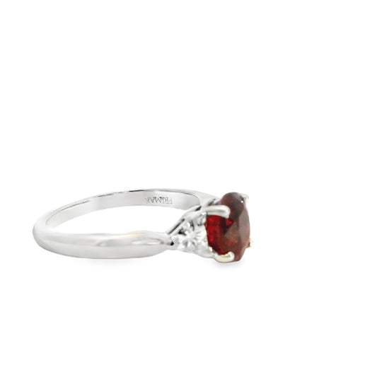 GIA 1.90 Red Ruby & 0.30cttw Trillion White Diamond in Platinum 5.75US 5.29g.