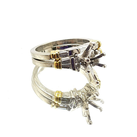 Naj Platinum & 18k Gold Wedding Set Semi Mount Ring & Band 5.5us
