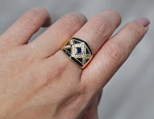 Le Vian Blue Sapphire Diamond Coctail Ring in 18k Yellow Gold