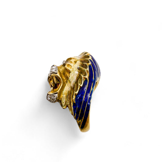 Vintage 18k Yellow Gold Enamel & White Diamond Tiger Ring 5.75US