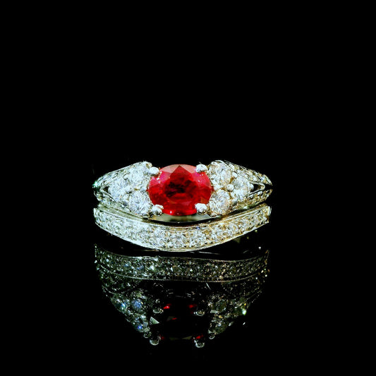 0.85 ct. Ruby & 0.80cttw. White Diamond Ring in 14k White Gold 5.5US 4.47g.