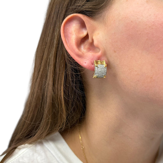 0.84 cttw. White Diamond Two Tone Earrings in 14k Gold 9.87g.