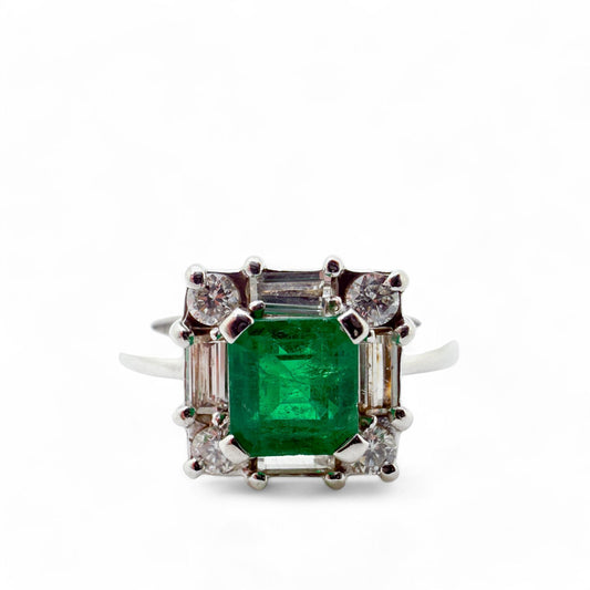 0.82 cttw. Green Emerald & 0.43 cttw. White Diamond Ring in 14k White Gold 5.75