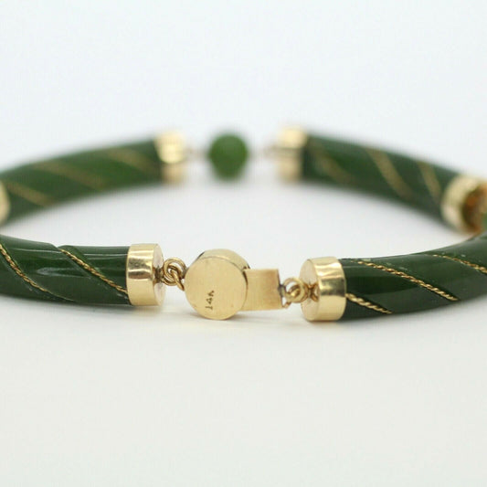 Vintage Forest Green Jade Gemstone Bracelet in 14k Yellow Gold 7.5"