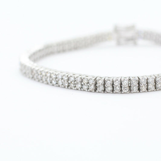 18k White Gold Double Row Round Diamond Tennis Bracelet 6.5"