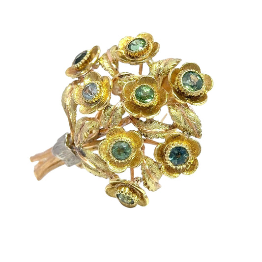 14K Yellow Gold Flower Bouqet Gemstone Brooch 10.97g