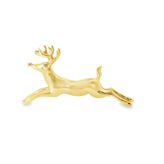 14k Yellow Gold Reindeer Brooch 9.48g.