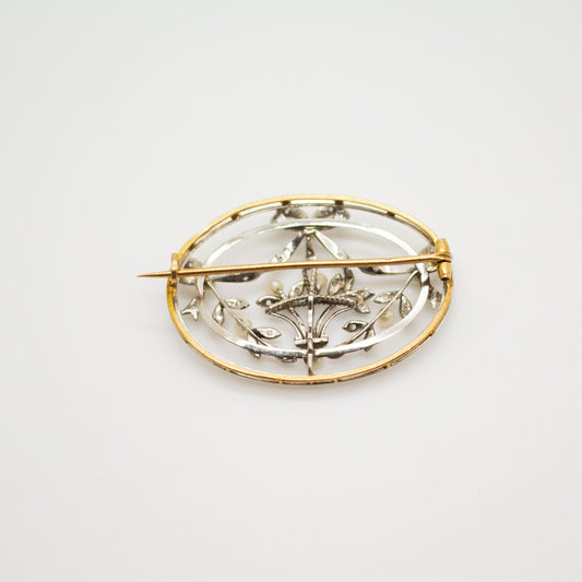 Vintage 18k Gold Brooch With Old Mine Diamonds & Pearls 5.6g