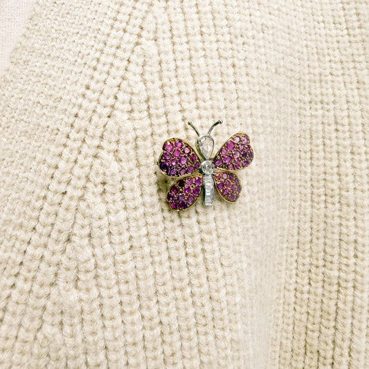 2.94 cttw. Pink Ruby & 0.65 cttw. White Diamonds Butterfly Brooch 8g.