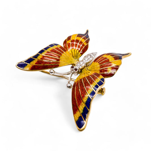 18K Yellow Gold Enamel Butterfly Brooch 13.5g