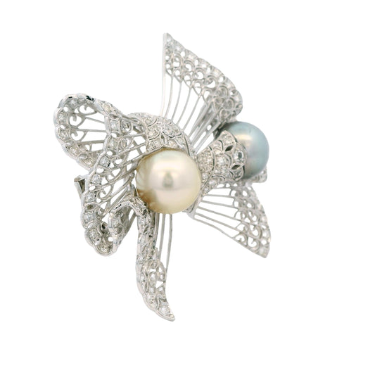 3.00cttw White Diamond & Pearl Brooch in 18k White Gold 27.41g.
