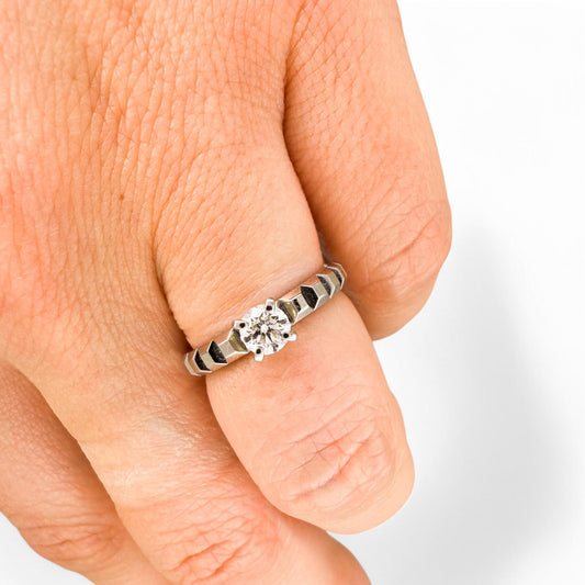 1.12 ct. White Diamond Art Deco Ring in 14k White Gold GIA Certified 7US