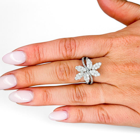 1.50 cttw. White Diamond Flower Ring in 18k White Gold 7US 5.70g.