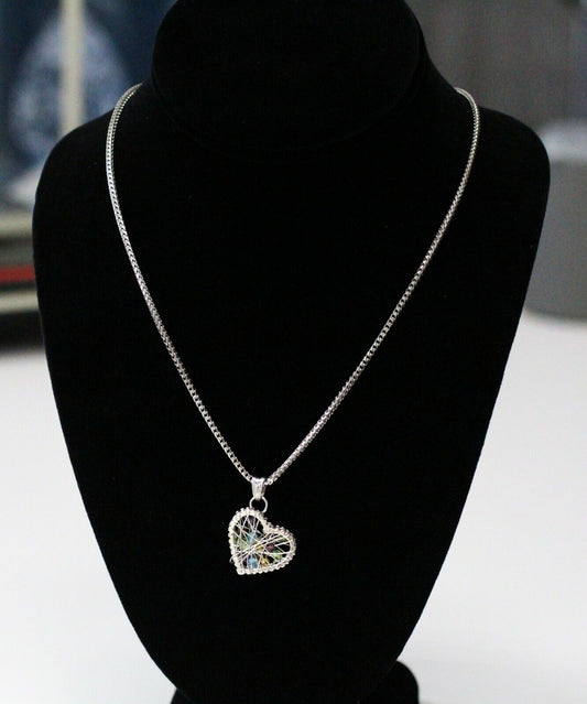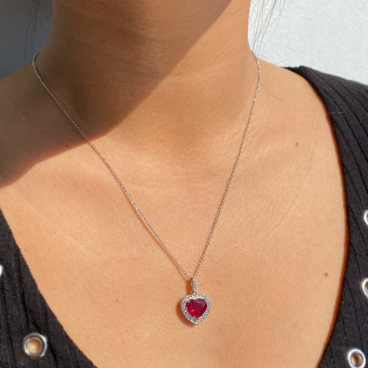 14k White Gold Heart Shape Ruby & Diamond Pendant W/ 18" Chain Gia Certificate