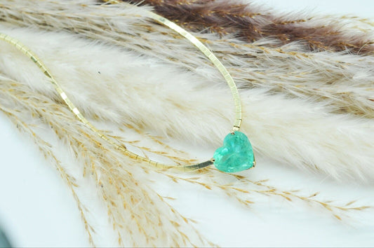 12 Carat Heart Emerald Dainty Necklace in 14k Yellow Gold