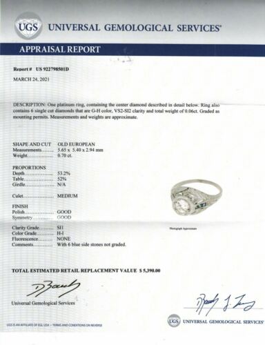 Vintage Platinum Old European Diamond Antique Ring With Sapphires