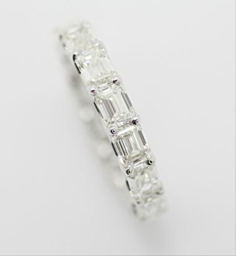 Women's Side Ways Emerald Cut Diamonds Eternity Band Ring in 18k White Gold 5.75