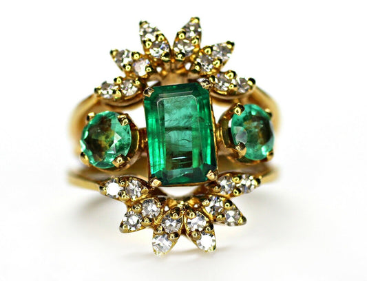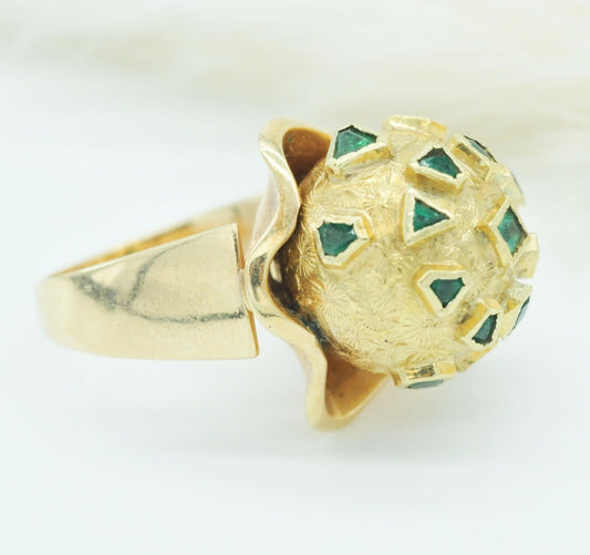 Vintage Ball Cluster Ring With Emerald Gemstone in 14k Yellow Gold 8us