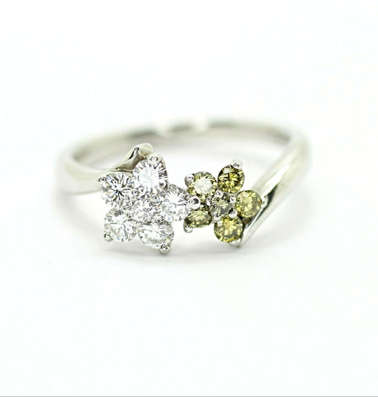 Double Flower Diamonds and Citrine Stone Elegant Ring in Platinum 9us