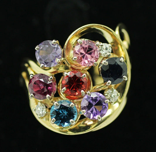 Multi-Color Natural Gemstone Cluster Ring in 14k Yellow Gold